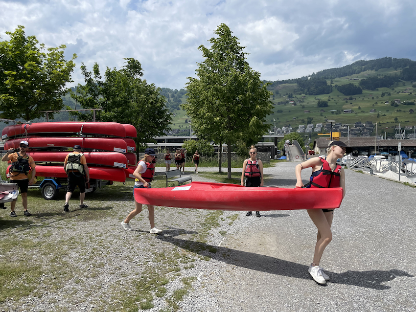 Im malerischen Hafenbecken von Buochs erwarteten uns am Donnerstagnachmittag drei erfahrene Kanuten zu einer fröhlichen Kanutour. In 1er-, 2er- oder 3er-Booten paddelten wir dem Ufer entlang. Die 8 km sowie das Steuern und Paddeln waren nicht ganz ohne Mühe zu bewältigen, aber der Spass überwog deutlich, zumal das traumhafte Wetter zu diesem sportlichen Nachmittag richtiggehend einlud. Danke den drei Guides von Kanuwelt.